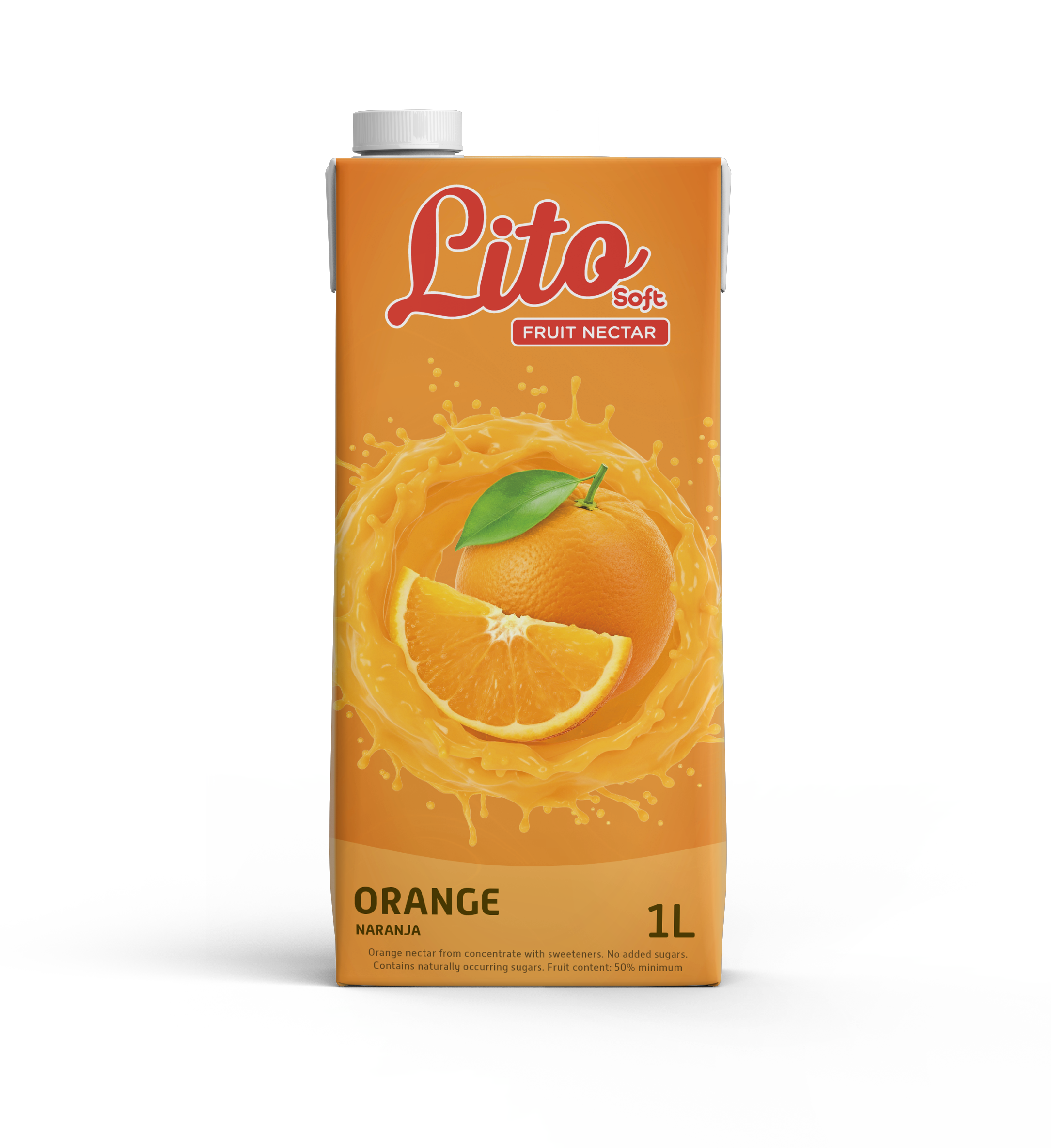 Lito Soft Fruit Nectar Naranja 1 L / Tetra Pak, néctar de fruta sin gas, 50 % de zumo de fruta, 12 unidades por caja, 1.850 cajas por contenedor de 20 pies, carga manual.